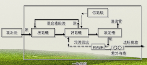 一體化有機廢水處理設備采用傳統(tǒng)成熟的A/O生物處理工藝,具備去除BOD5、COD、TN、TP于一體的功能,具有技術性能穩(wěn)定可靠、去除污染物效率高、體積小、重量輕、可自由移動、維護和維修方便、動力消耗低、不受水位高差限制等優(yōu)點。